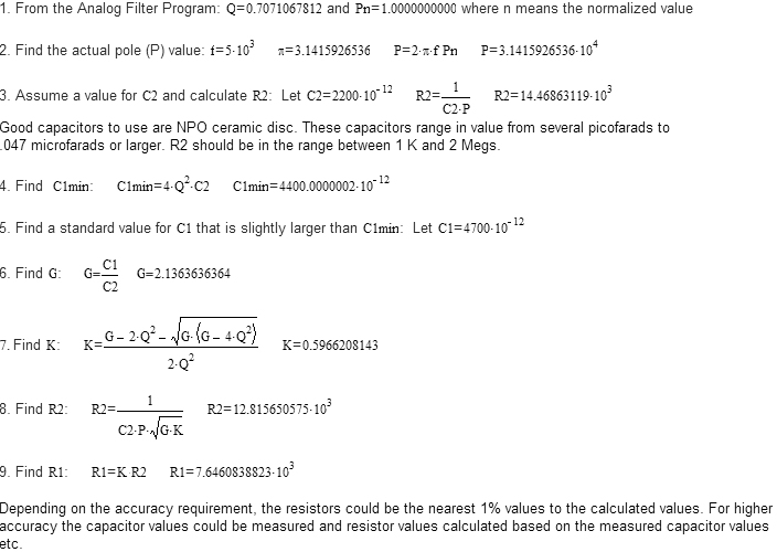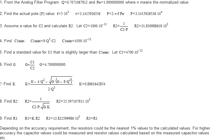 Example: Find the component values for a 2-pole Butterworth low pass active filter with a 5 KHz cutoff frequency